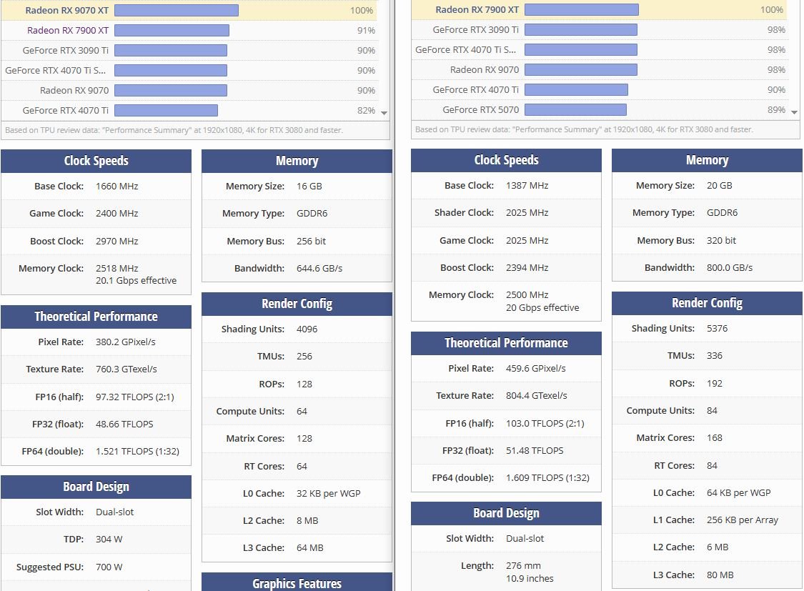 Und 4096 Shader VS 5376 Shader...Viel mehr Rohleistung RechenleistungGerryB schrieb:RDNA3 hat nen größeren L3-Cache mit 96MB vs RDNA4 mit 64MB.