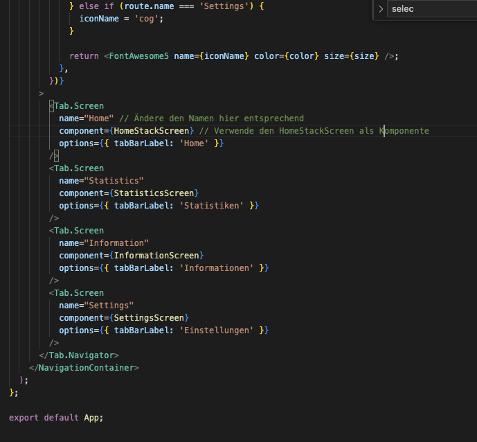 Das ist meine App.js: