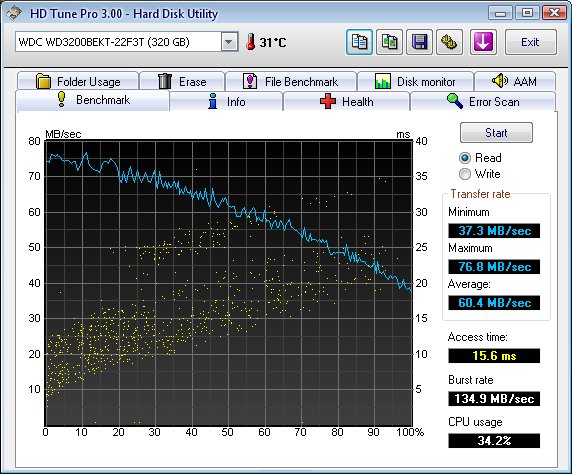 Laut Everest und dem Intel Storage Manager ist eine Western Digital Scorpio Blue 500GB, SATA II (WD5000BEVT) verbaut. Die ja eigentlich nicht soooo schlecht ist.