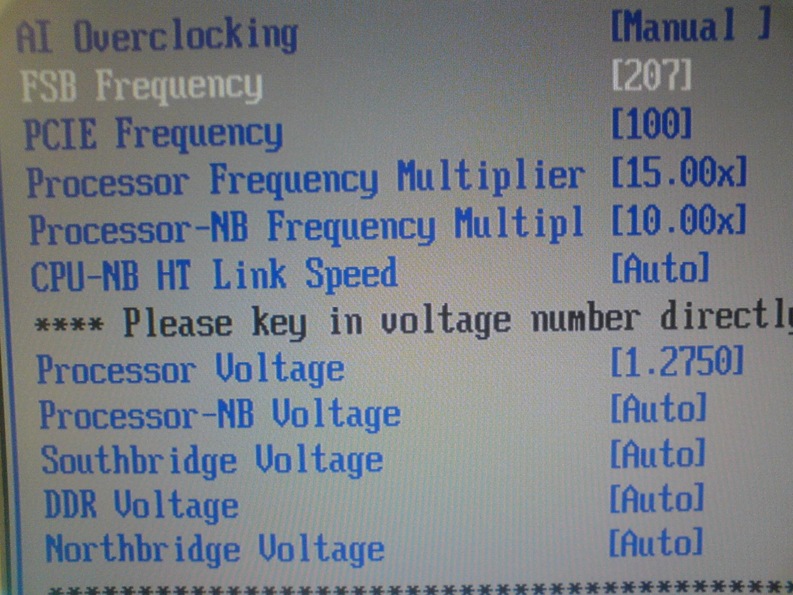 ich möchte gerne meine Northbridge etwas übertakten, da ich gehört habe dass einen schönen Performanceschub bringt. Nur weiss ich nicht welche Spannung ich erhöhen muss. Und wenn ich schon beim Fragen bin, was sollte ich bei den anderen Spannungen einstellen, finde AUTO-Spannungen nicht so toll. Und zu guter Letzt: Wie heiß darf dass Mainboard werden?