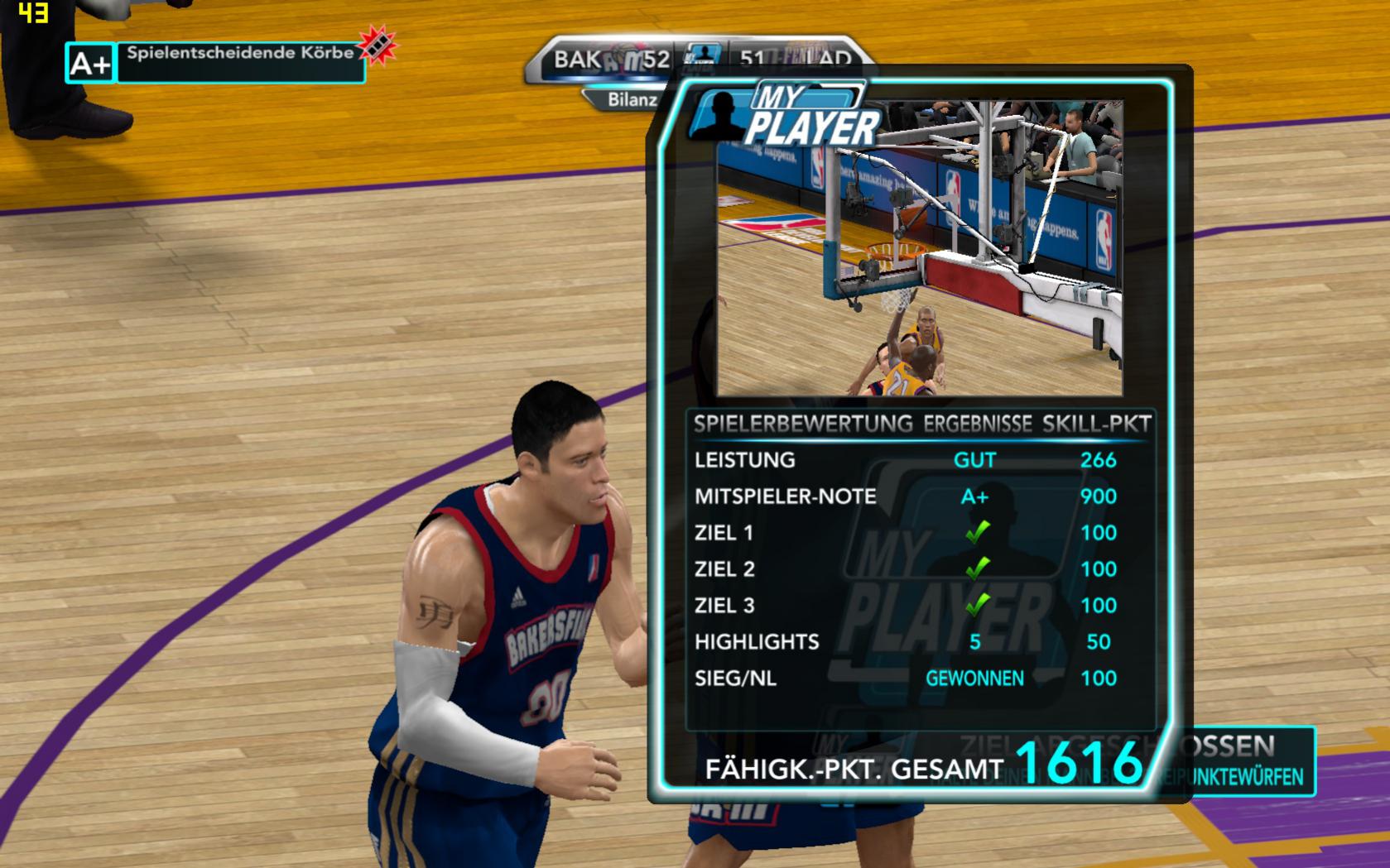 Hab grad mit meinem Player das beste NBA Spiel abgeliefert! So langsam fängt der echt an richtig zu rocken! Aus ihm wird ne richtige Dunkingmaschine gemacht