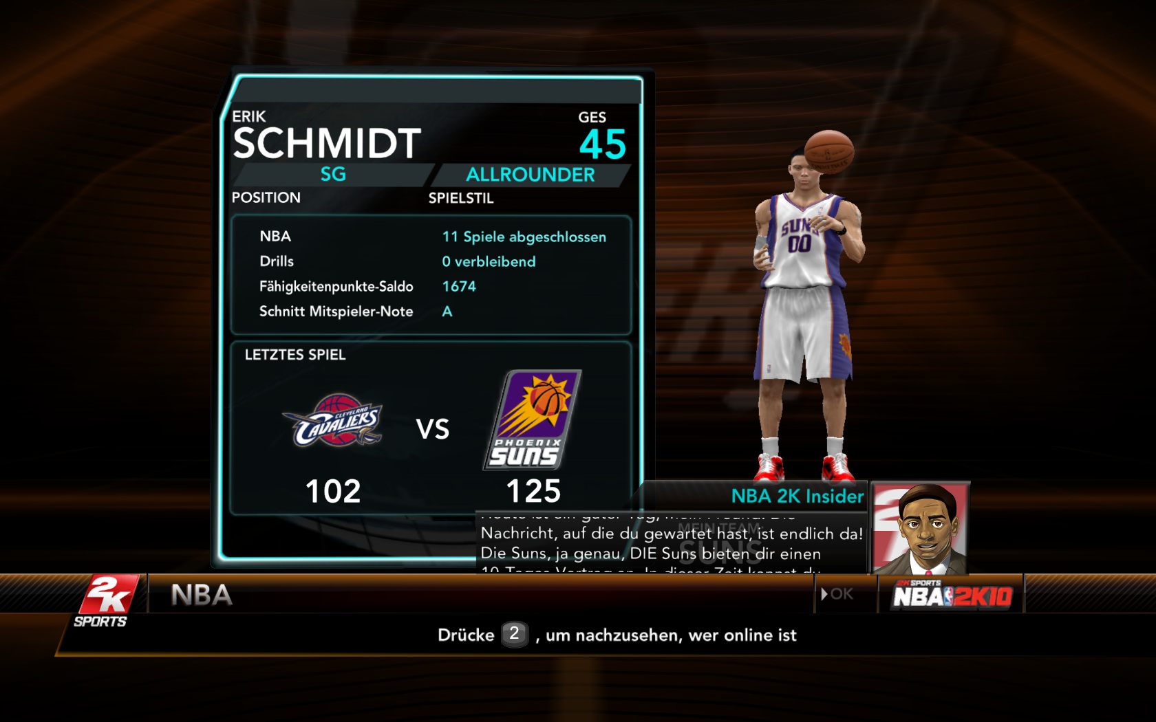 Leider wurde ich nicht übernommen trotz passabler Stats. Jetzt nach 11 Spielen D-League bei meinen heiß geliebten Bakersfield JAM hab ich ein Angebot der Pheonix Suns bekommen. YEAH!!!