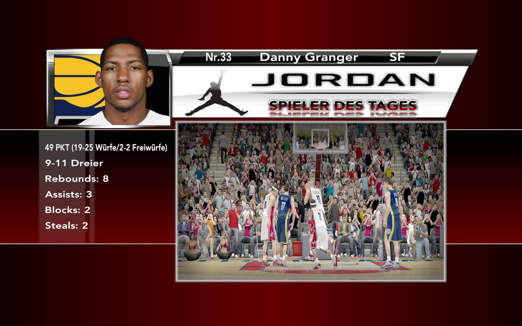 Player of the Game wurde wie zu erwarten Danny Granger der an diesen Abend 49 Pkt auflegte. Viel wichtiger als die schiere Punktemenge, war jedoch die Effizienz beim Abschluss. Granger traf 19 von 25Würfen davon 9von 11 Dreiern und machte nebenbei noch 8Rebounds 3 Assists 2 Blocks und 2 Steals.