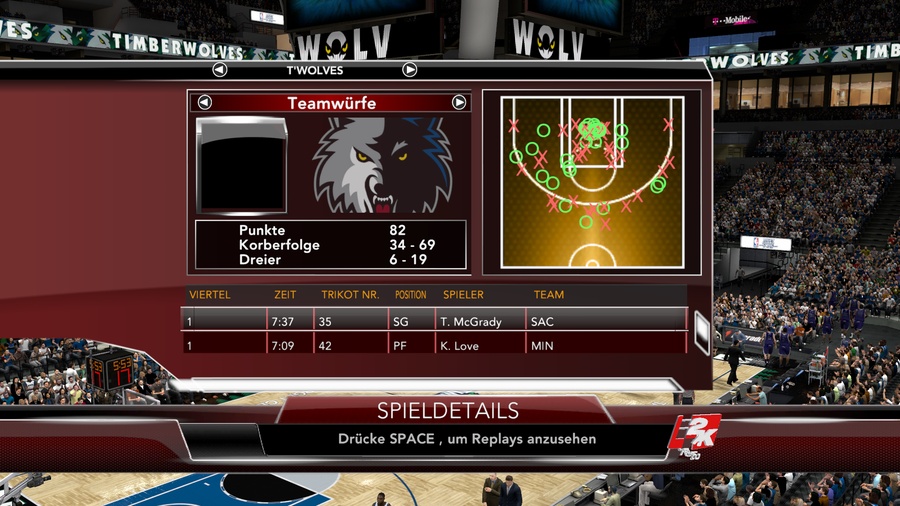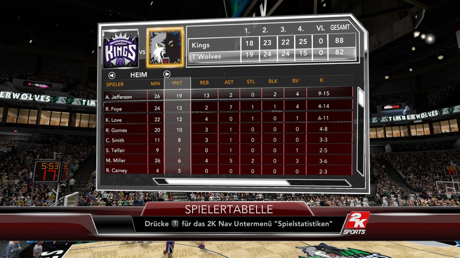 Daneben das erste technische Foul, was mir untergekommen ist seit ich NBA zocke!!! Carmelo mit brutalen Einsteigen beim Fast-Break gegen Howard... (vor Überraschung und Aufregung aber vergeben...