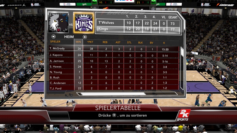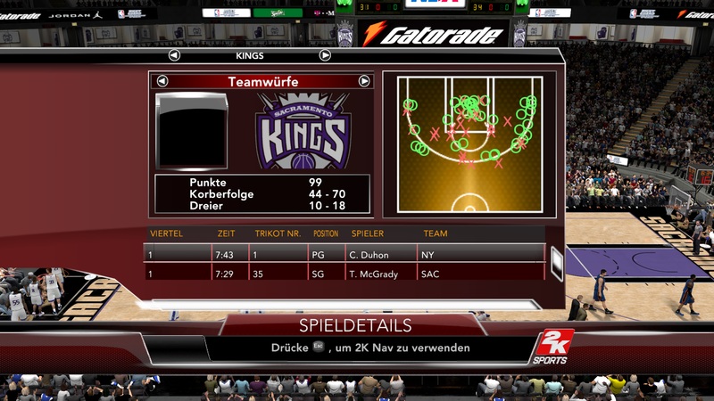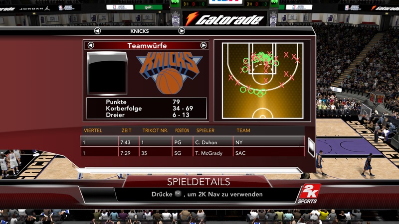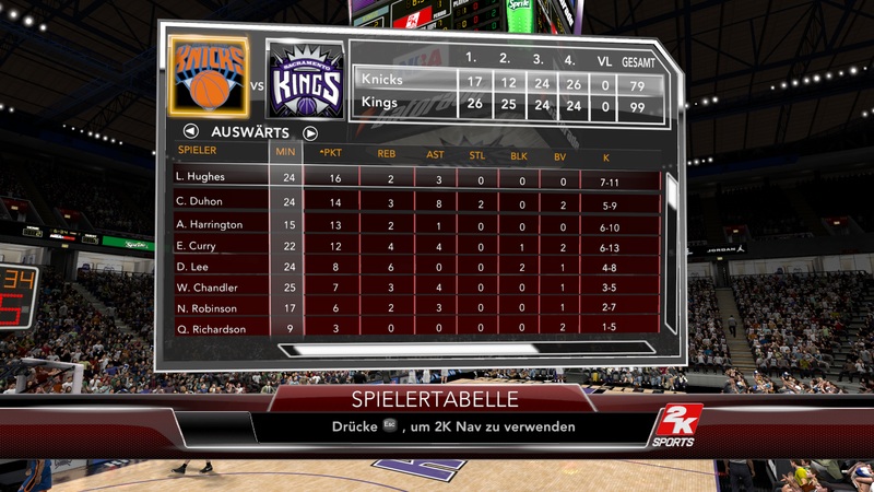 Das nächste Spiel gegen die Knicks stand an. Die CPU derzeit im Verlierermodus. Die Knicks fingen gut an und erabeiteten sich eine Führung vom Start weg. Dieser Run jedoch brachte die Kings frühzeitig auf die Siegerstraße.