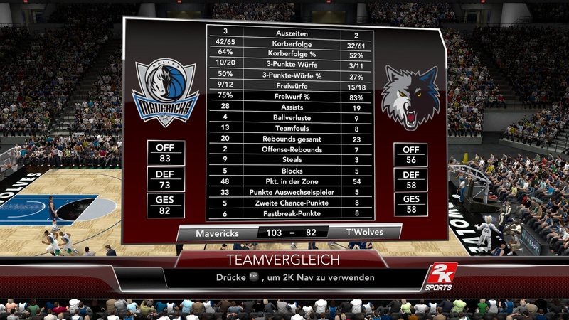 Der beste PF der Liga rockte die Halle und nach 3min hatten die Mavs 13 und die Cavs 0Pkt erzielt. Das Match war entschieden und Player of the Game wurde absolut verdient Dirk Nowitzki