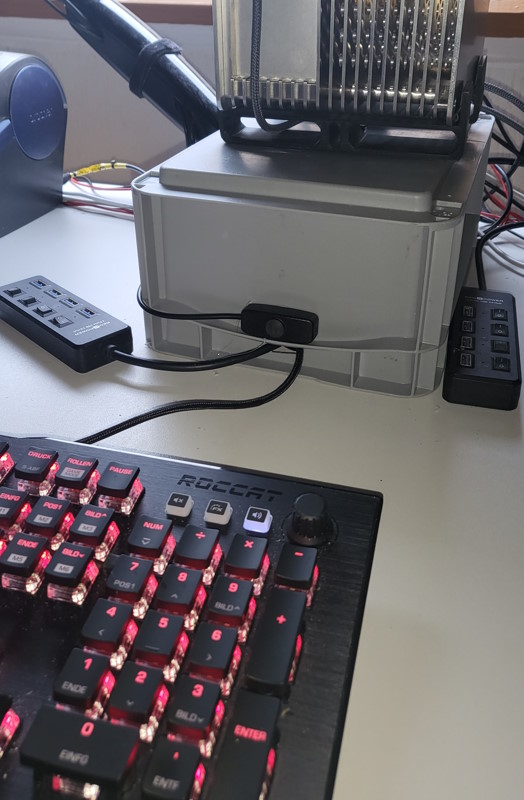 Da ich halt oft was mit ESP (S2) und Co mache habe ich die USB Stromversorgung auch überall gekappt und nur die Datenleitungen durchgeschleift und kaskadiere die - dann geht im schlechtesten Fall hoffentlich nur der Hub flöten - das ist zumindest der Plan