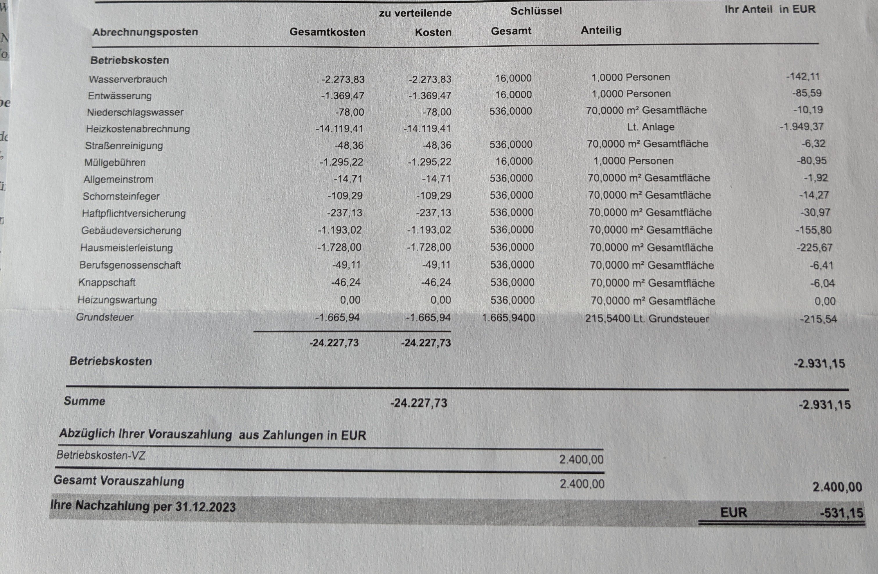 Also 531€ auf über 1000€. Wenn gem. Verteilerschlüssel nur Wasser und Müll betroffen sein soll.