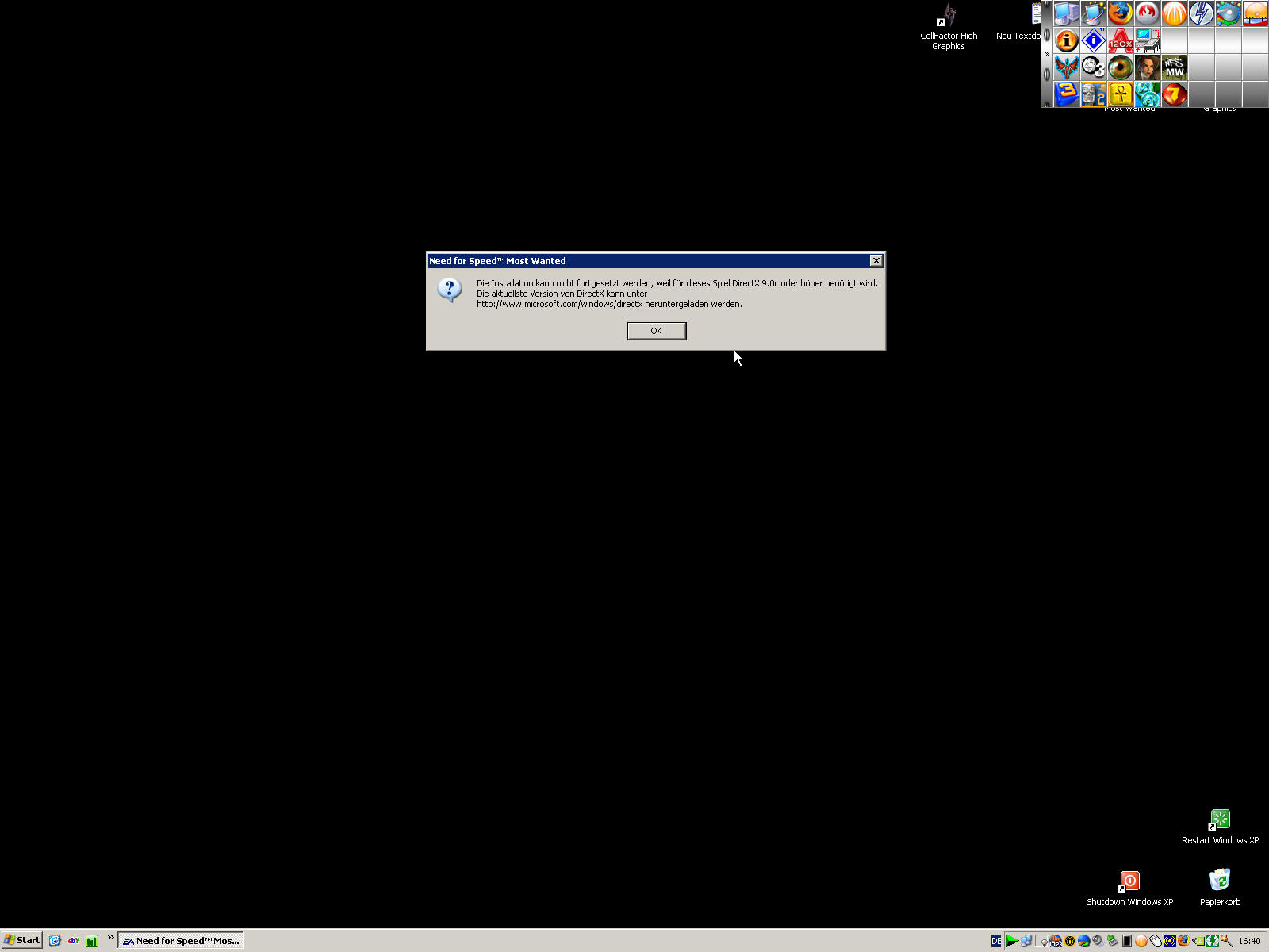 NFS Most Wanted - DirectX 9.0c Fehlermeldung während der Installation