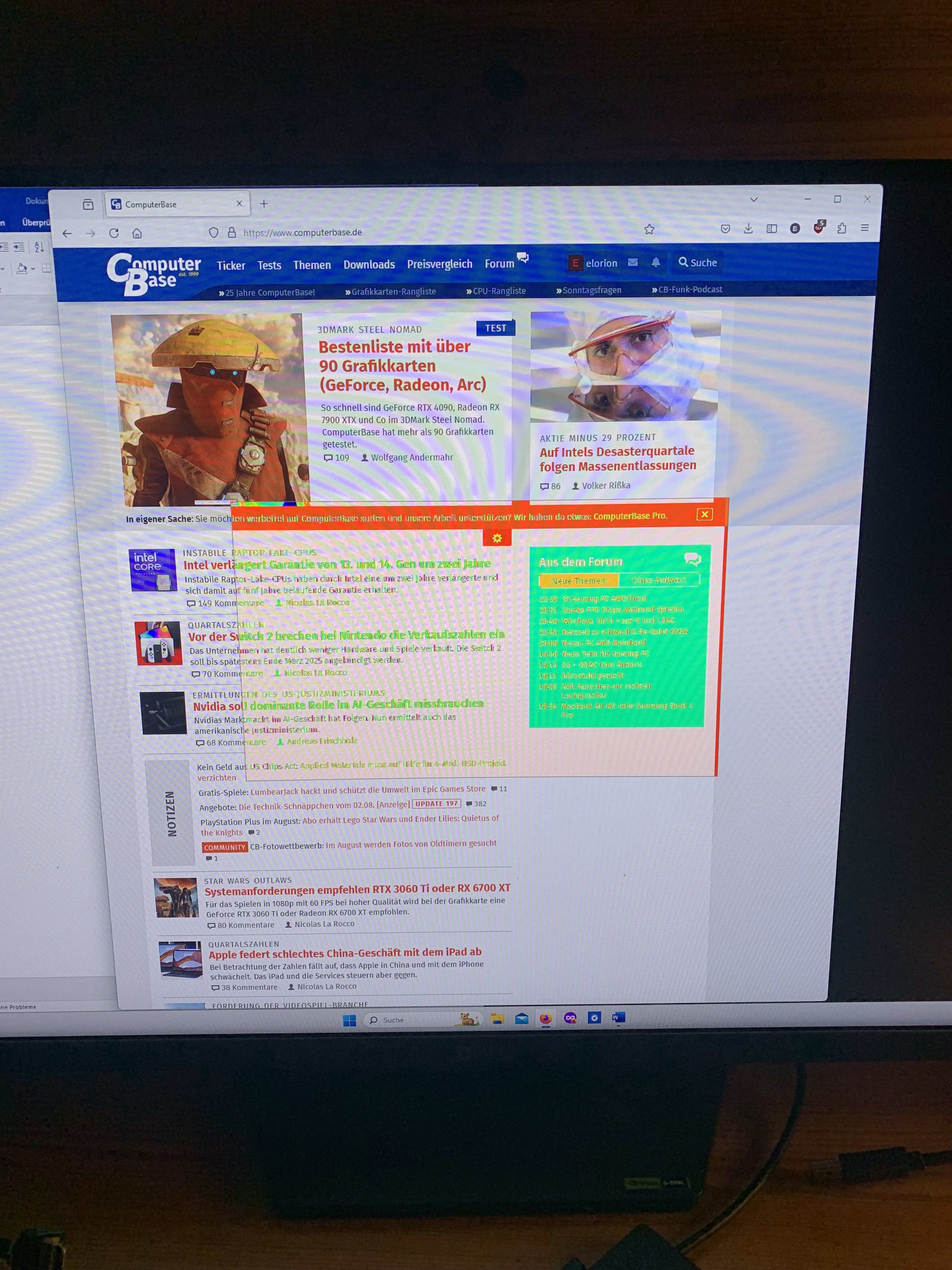 Wenn ich das Problem via Snipping Tool oder Screenshot festhalten möchte, zeigen die Bilder allerdings in dem Bereich "normalfarben" und als wenn kein Fehler vorliegen würde...