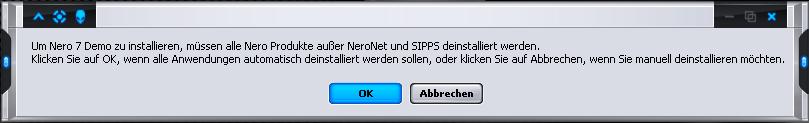 Ich hatte Nero 7 bei mir installiert. Nachdem ich aber ein Produktupdate durchführen wollte (InCD hinzufügen) brachte er mir beim öffnen von InCD einige Fehlermeldungen, also wollte ich Nero komplett neu installieren.