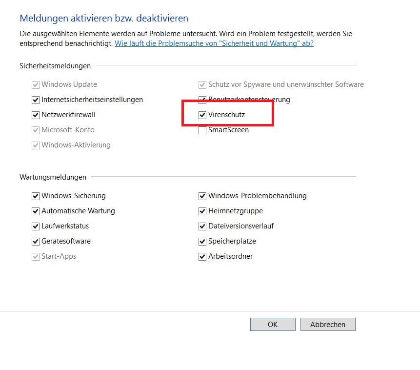 Systemsteuerung\Alle Systemsteuerungselemente\Sicherheit und Wartung\Einstellungen für "Sicherheit und Wartung" ändern