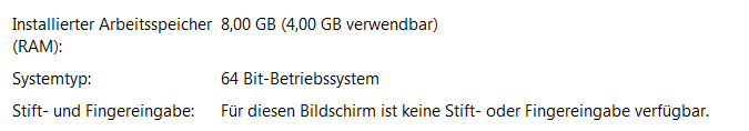 Außederm wird in der System übersicht als installierter Arbeitsspeicher 8gb angezeigt.