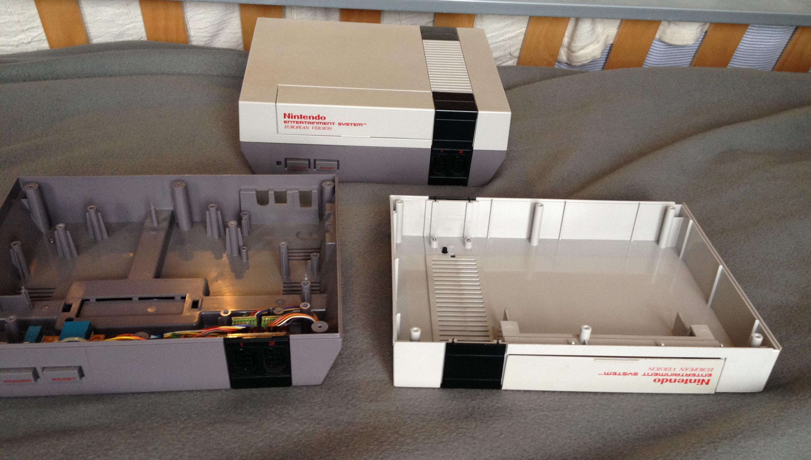 Ich wage mich auch mal an eine Modifikation. Mein altes NES muss nun dafür herhalten. Das wird ein Worklog, der eher selten aktualisiert wird, weil ich im Moment weder viel Zeit, noch viel Geld habe, um das Projekt schnell abzuschließen. Ich starte das hier auch nicht, um mit der 1.000 Modifikation zu protzen, sondern weil ich Hilfe brauche und viele Fragen habe, z.B. wenn es um die handwerklichen und elektrotechnischen Modifikationen geht, z.B. für den Anfang: