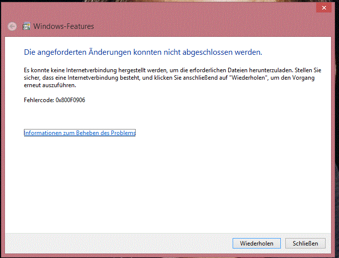 mein System steht in der Signatur. Ich versuche seit zwei Tagen Net Framework 3.5 zu installieren aber es klappt nicht. Ich habe bestimmt schon 50 Google Seiten durch jedoch hat nichts geholfen. Ich habe es erst versucht als Feature hinzuzufügen jedoch bekomme ich einen Fehler angezeigt. In der Kommandozeile habe ich es auch schon Probiert mit DISM funktioniert auch nicht. Ich habe es einmal mit der originalen Windows 8 DVD probiert und einmal kopiert auf Laufwerk c beides funktioniert nicht. Die All in One Runtimes habe ich auch schon probiert hier funktioniert es auch nicht ich hoffe mir kann jemand helfen denn das 3.5 ist von einigen Programmen abhängig die ich brauche.