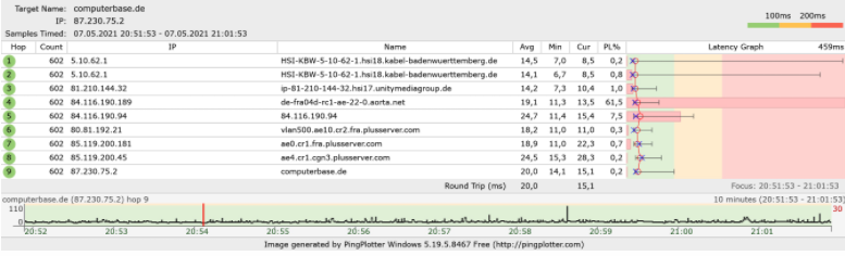 Eigentlich ist meine Internetverbindung (VDSL 50Mbits Vertrag) auch in Ordnung, denn ich erhalte den vollen Durchsatz in jeglichen Speed Tests etc. und habe seit einem Jahr keine keine Verbindungsabbrüche gesehen. Die Latenzzeiten sind für VDSL auch extrem gut mit konstanten 9ms ping zu Google.