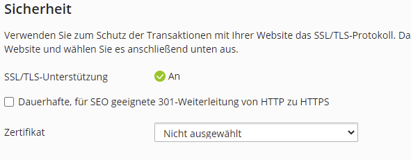 Hosting-Einstellungen -> Sicherheit