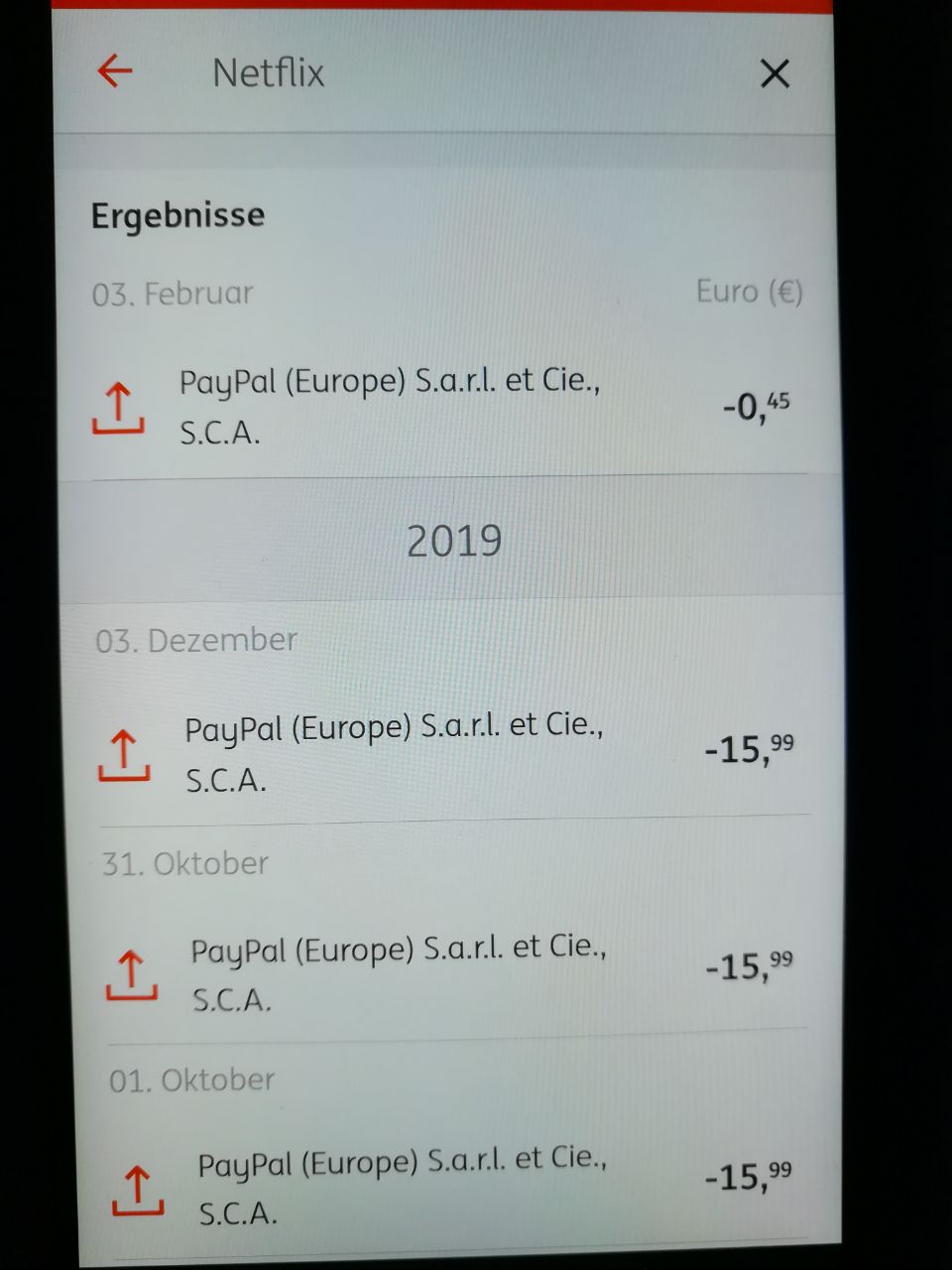 Anbei mal der Screenshot meiner gefilterten Netflix-Abbuchungen seit Oktober letzten Jahres.