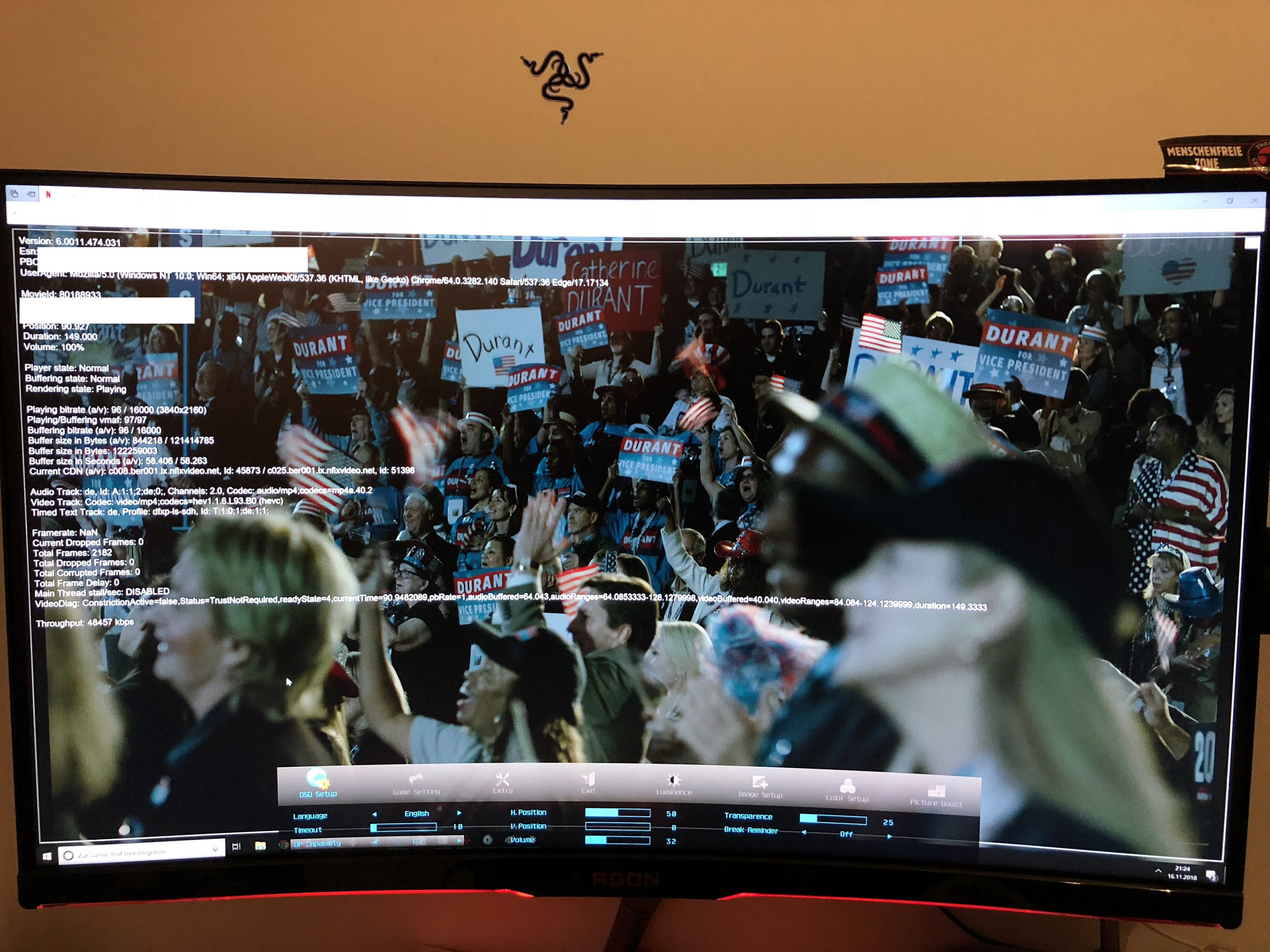 Hier noch ein "Screenshot" von einem Stream auf einem AOC AG322QCX WQHD-Monitor inkl. Ansicht vom OSD-Menu bzgl. Display-Port 1.2 Mode: