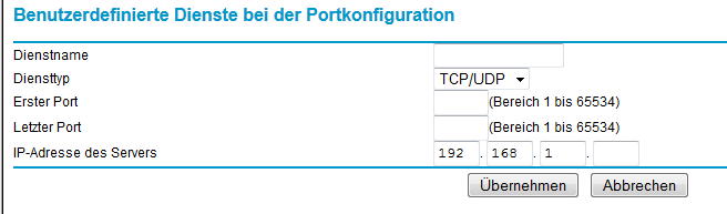 Ich bin auch schon im Routermenü, da gibt es eine Funktion wo ich Ports freischalten kann (siehe Bild). Was muss ich da eingeben?