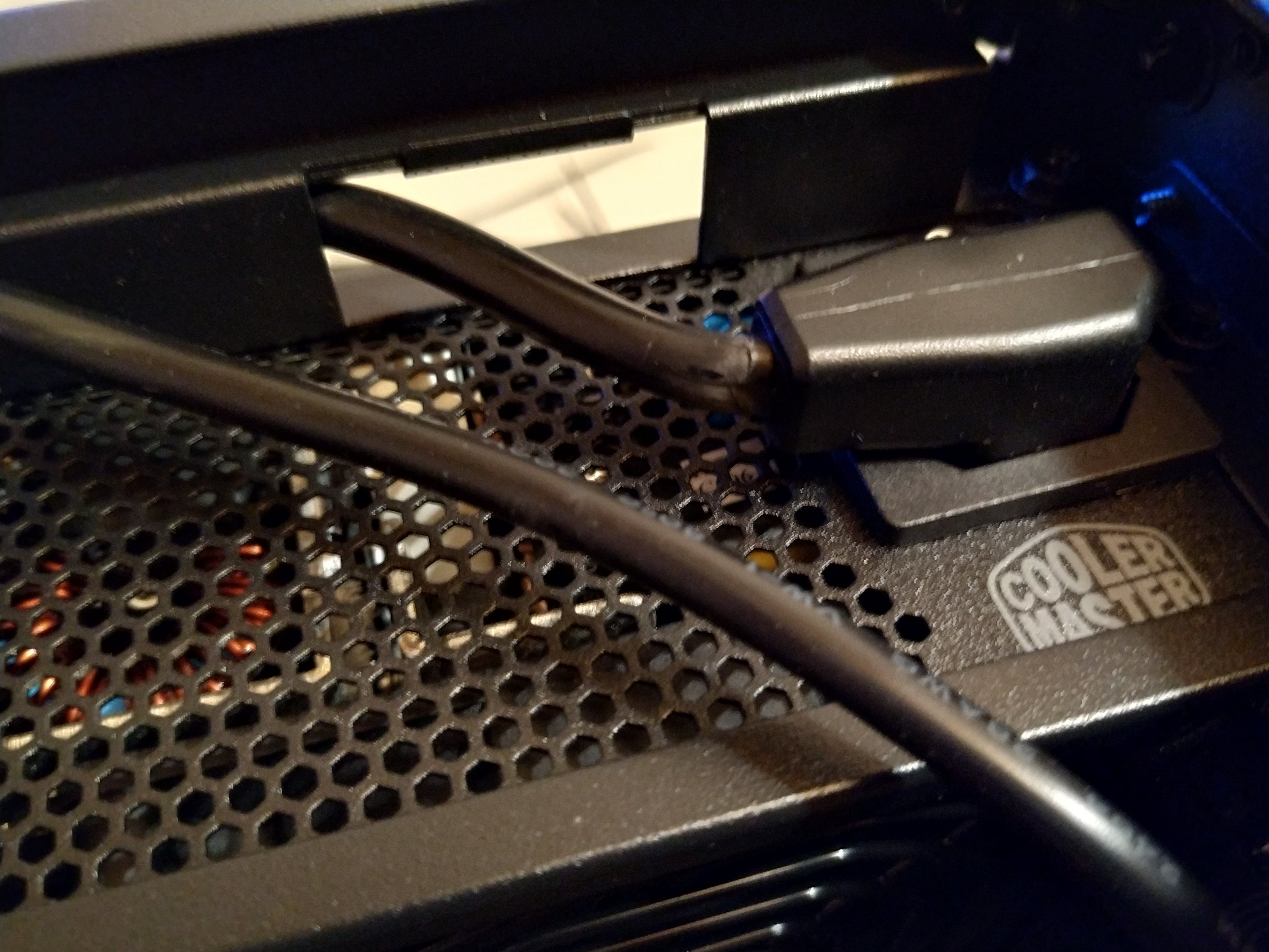 ich habe dieses Barebone und die Hardware ist auch so weit verbaut, als mir auffiel, dass die Ummantelung des Kabeln, welches vom Netzteil im Inneren des Case bis zum hinteren Kaltgerätesteckeranschluss führt porös ist, ein Bild folgt.