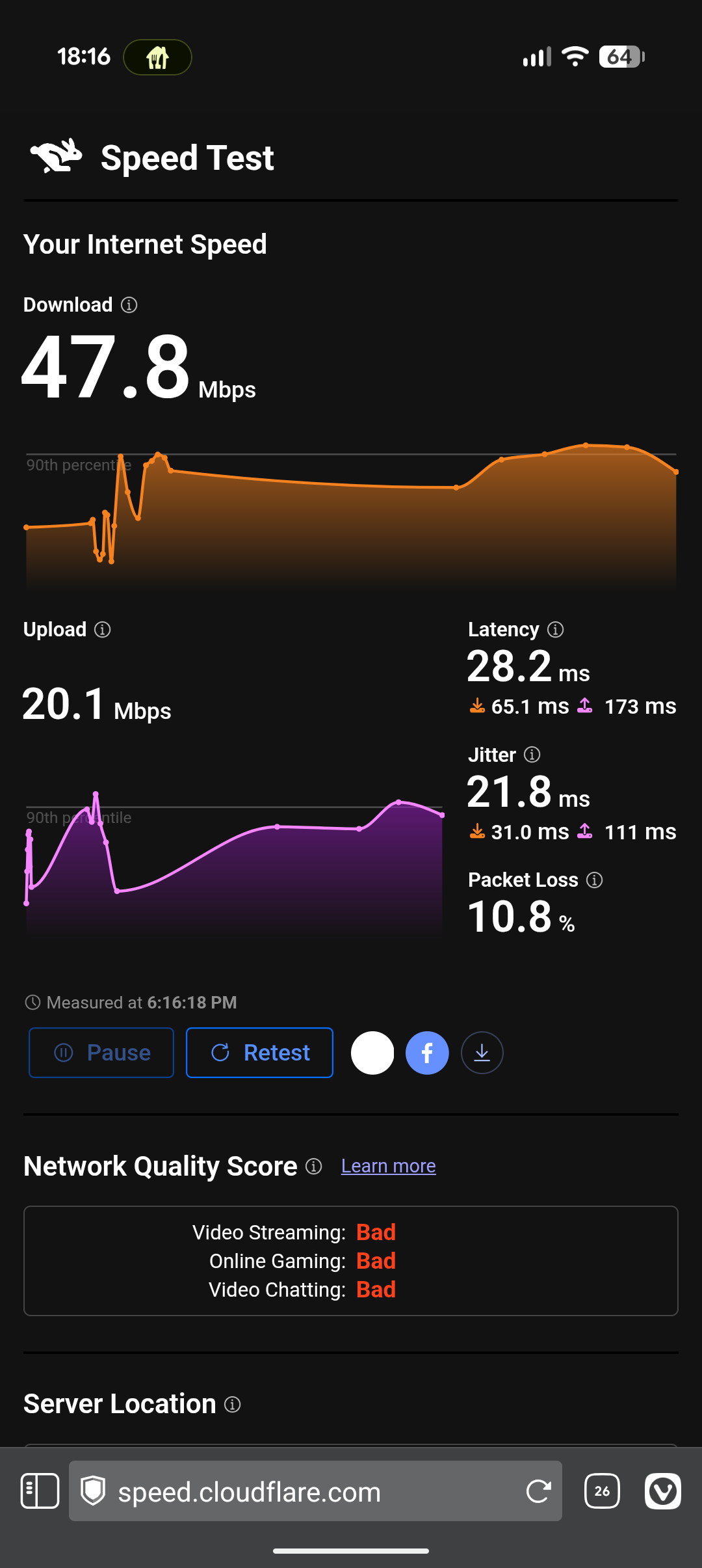 Der Cloudflare Speedtest ist, egal ob über die cli auf meinem Server (Download springt mal an, mal nicht) oder über den Browser (auch da eher Glücksspiel, ob es durch läuft) eher eine Katastrophe... (Egal ob Hybrid Telekom oder Kabel mit Vodafone)