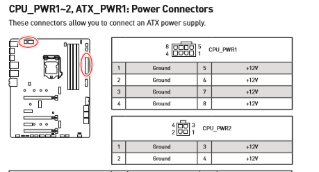Der 8 Pin ist der Power1 Anschluss und der 4 Pin der Power2 Anschluss. Und das Handbuch rät auch dazu beides anzuschließen.