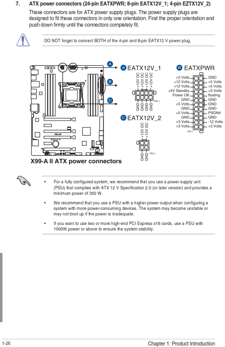 edit hab auch aus dem ROG Forum irgendwas im Kopf, dass man den zusätzlichen Anschluss nur braucht, wenn man in Richtung 3/4 way SLI geht oder für extremes übertakten. Normalerweise bekommt das Board genug Saft, 4 Grafikkarten ziehen aber wieder 4x75W übers Board und dann könnte der 24 Pin nicht mehr ausreichen oder es fließt zu viel Spannung durch einen der Spannungswandler, je nachdem wie das Board geschaltet ist, könnte es sein, dass das Board bei Benutzung des 2. Anschlusses die Spawas besser entlastet, ist jetzt nur so ne Theorie von mir.