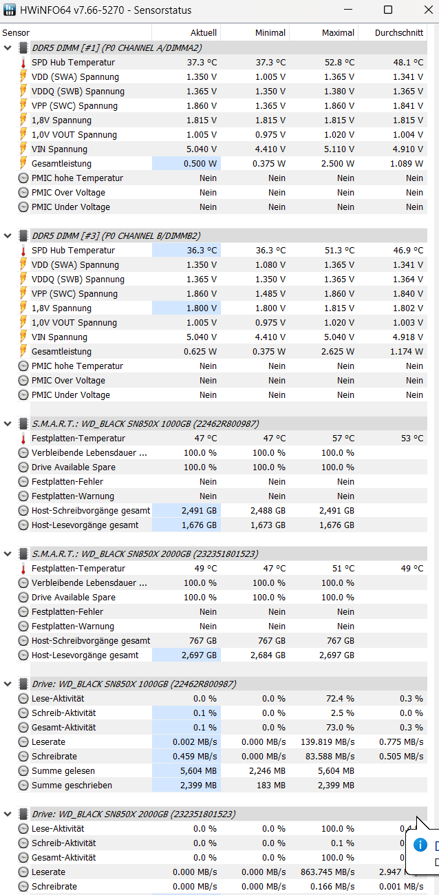 NVME: 2x WD Black SN850X 1x1TB und 1x2TB