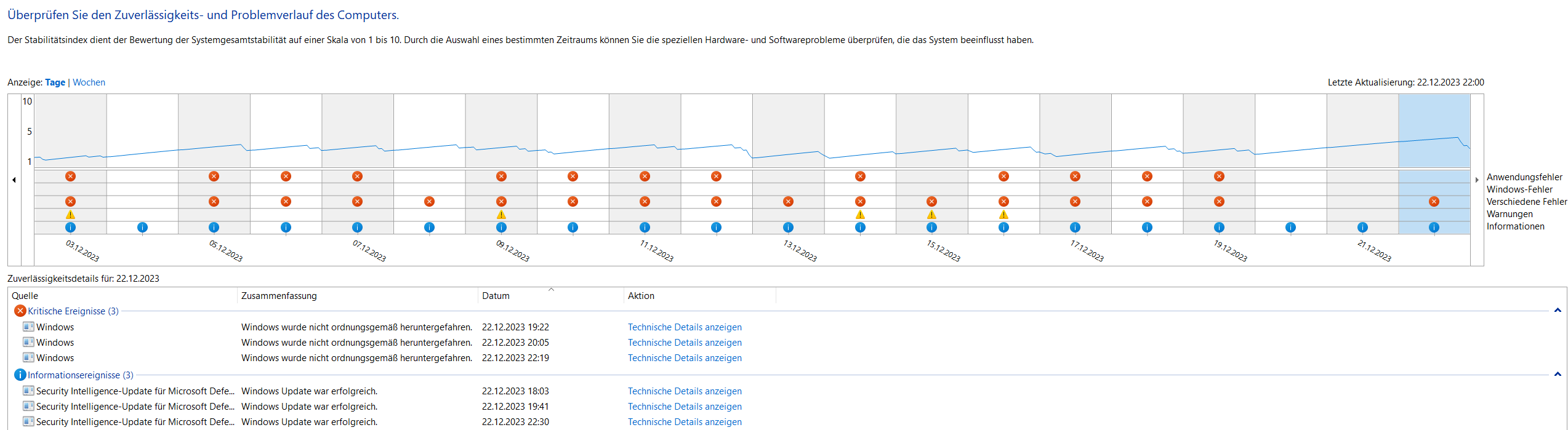 Hier noch ein paar Screenshots von HWInfo64 und dem ZuverlÀssigkeitsverlauf.