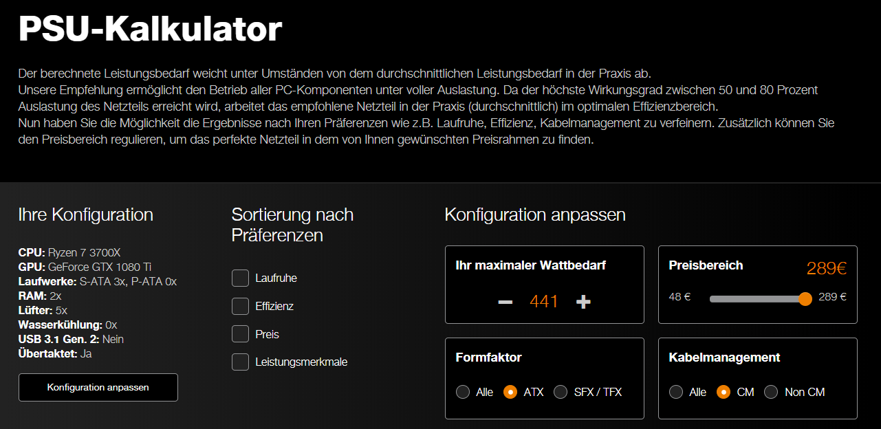 Den Kalkulator kannste knicken. Da kommen oftmals Fantasiewerte raus.
