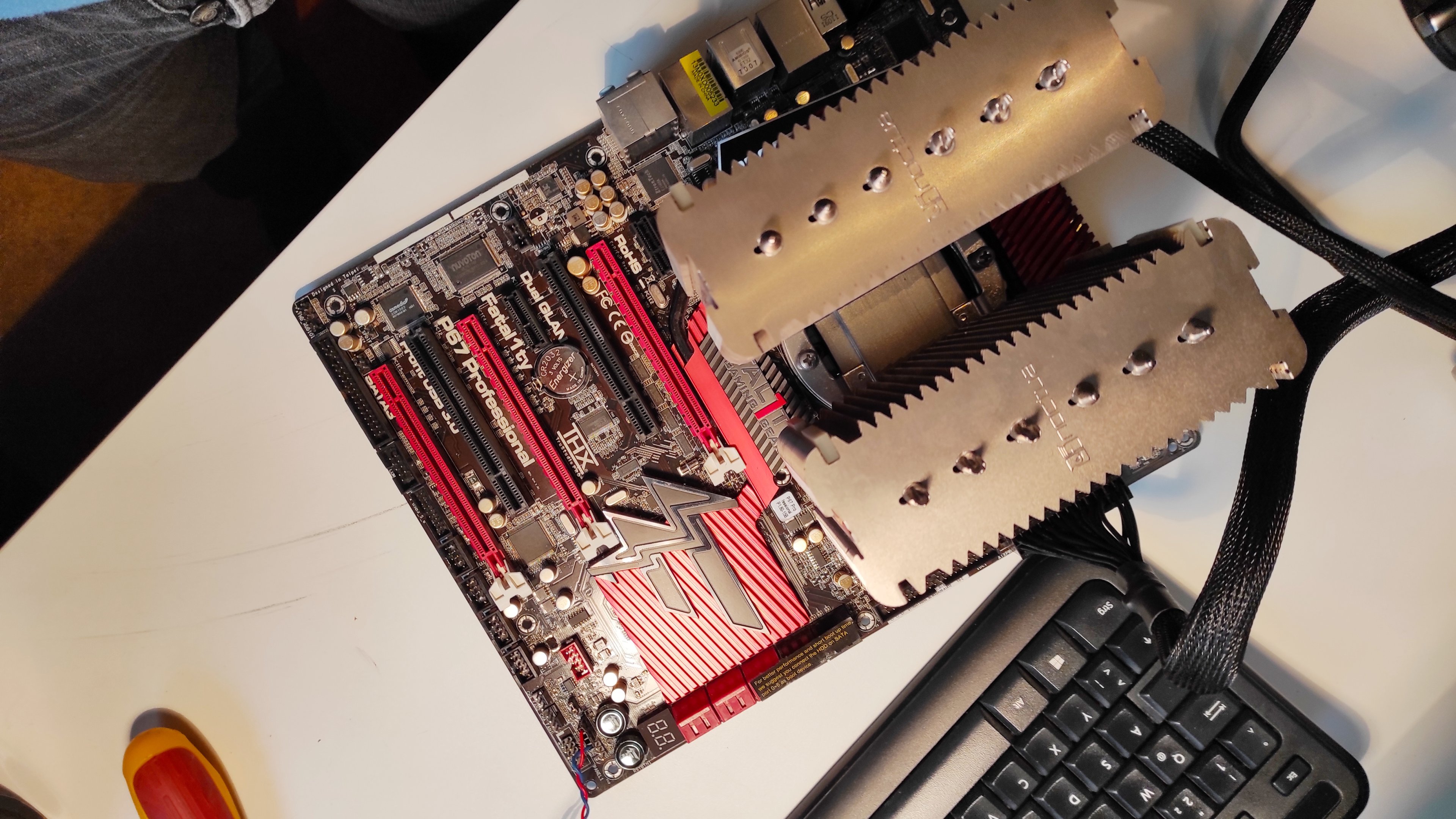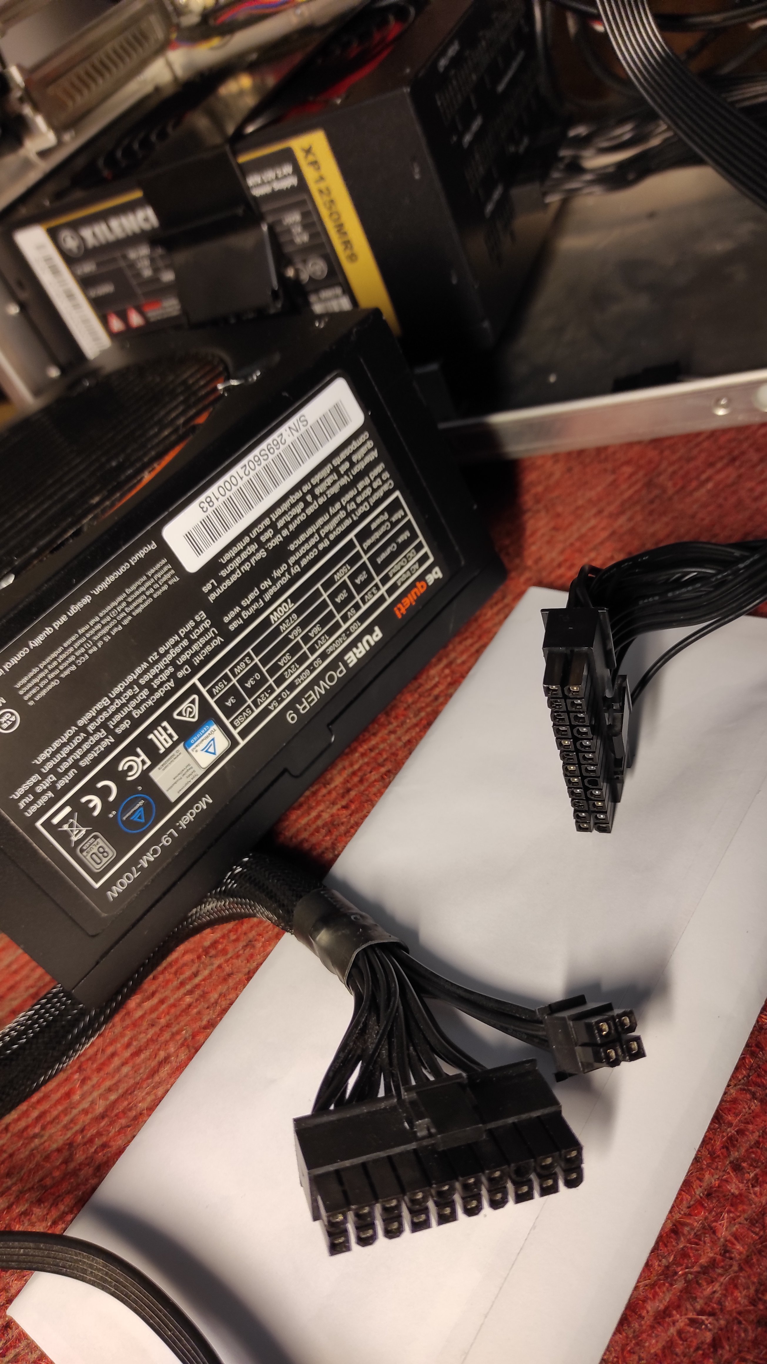 (vorher, als der Rechner noch zusammengebaut war, hatte ich bei den Netzteiltests einen Ton an einem per USB angeschlossenen Druckerverteiler - da hatte ich noch den Optimismus, dass es doch noch lebt)