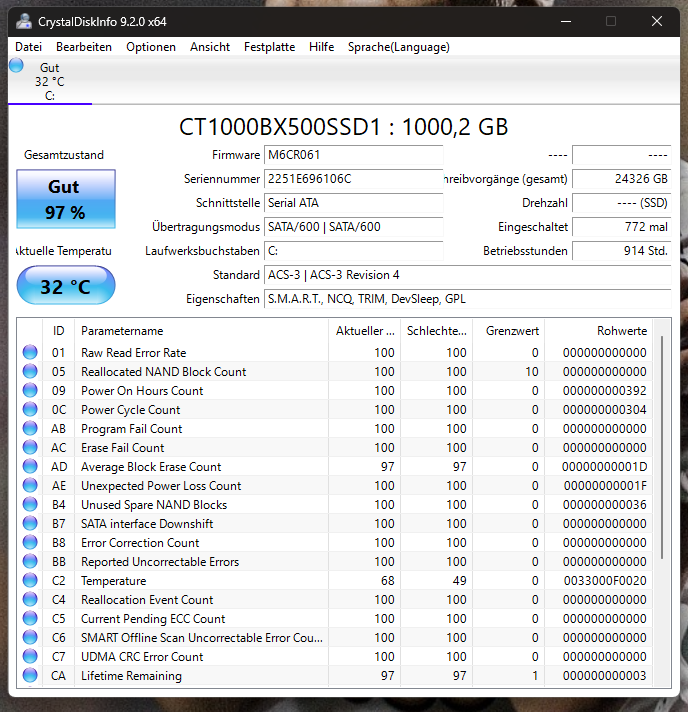 - HDD / SSD: Crucial BX500 1TB, SATA SSD