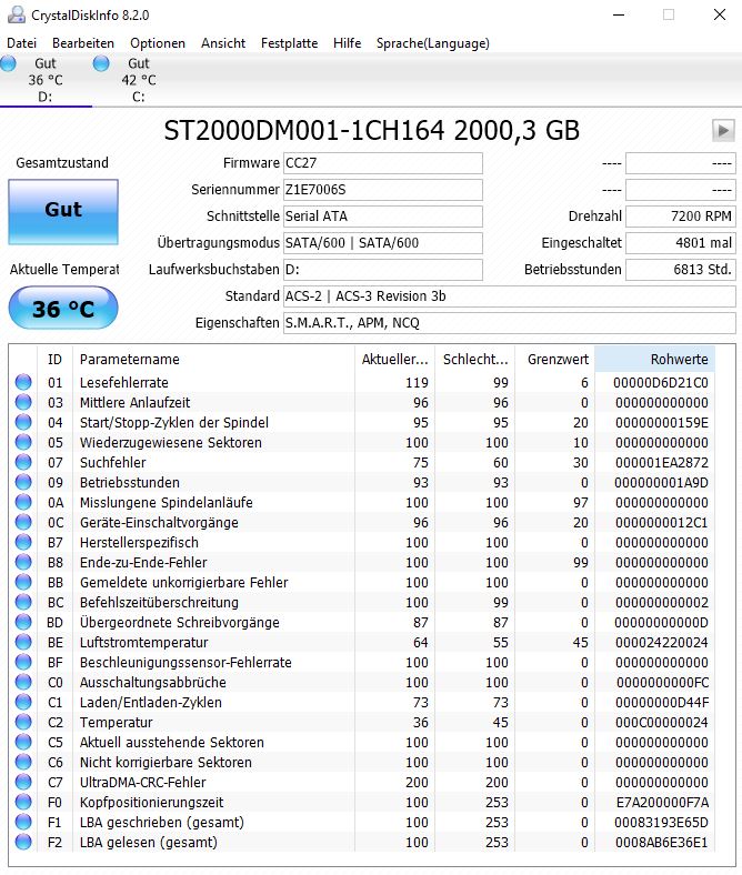 2000GB Seagate Desktop HDD ST2000DM001 7.200U/min 64MB 3.5" (8.9cm) SATA 6Gb/s