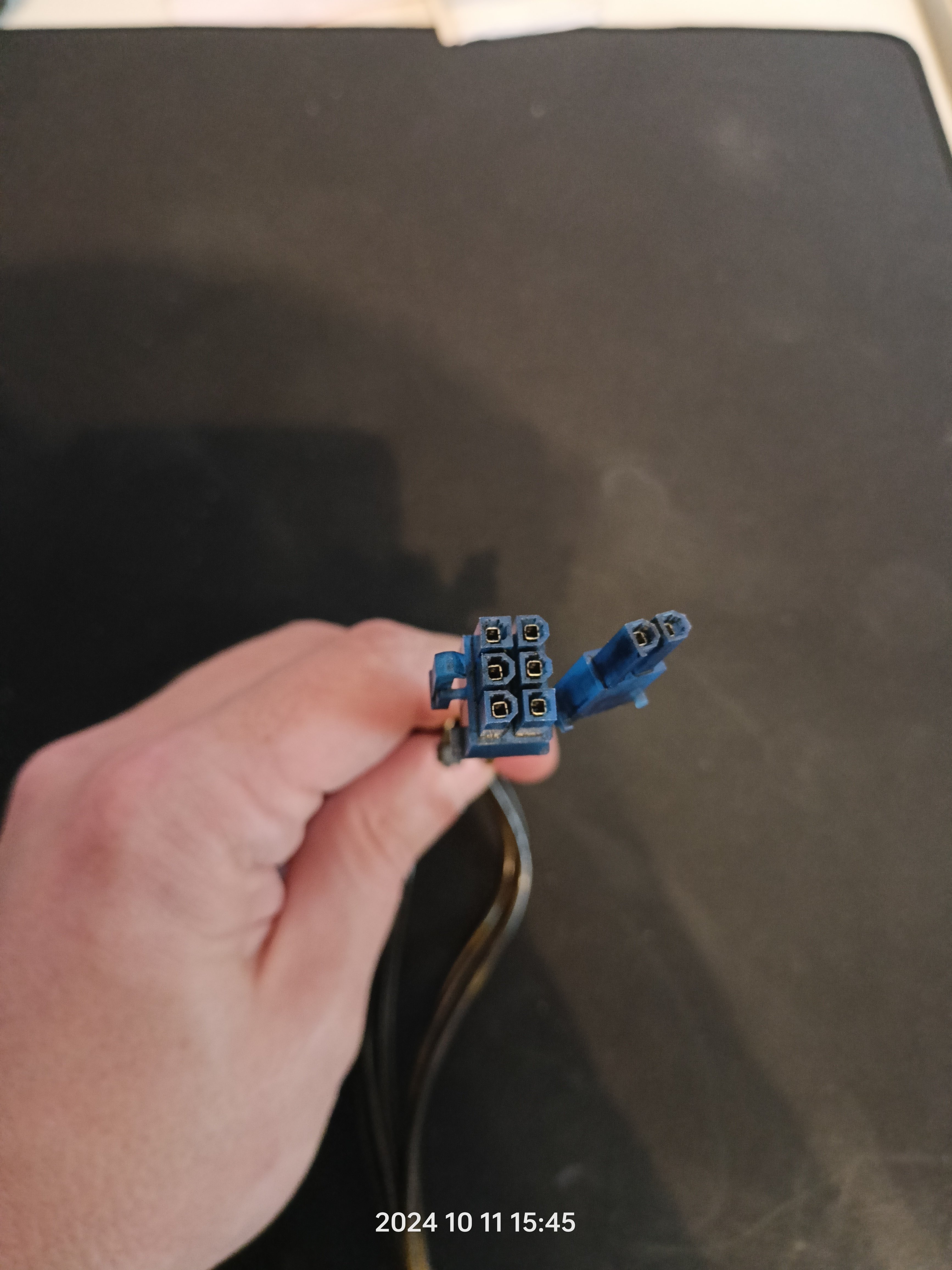Ich habe die Kontakte des PCIe Kabels so gut es geht gesäubert, traue mich aber nicht das Teil anzuschließen. Ich bin zwar ITler, aber kein Elektriker.