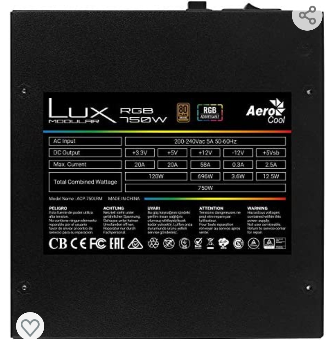 750Watt Bronze Netzteil der Marke AeroCool