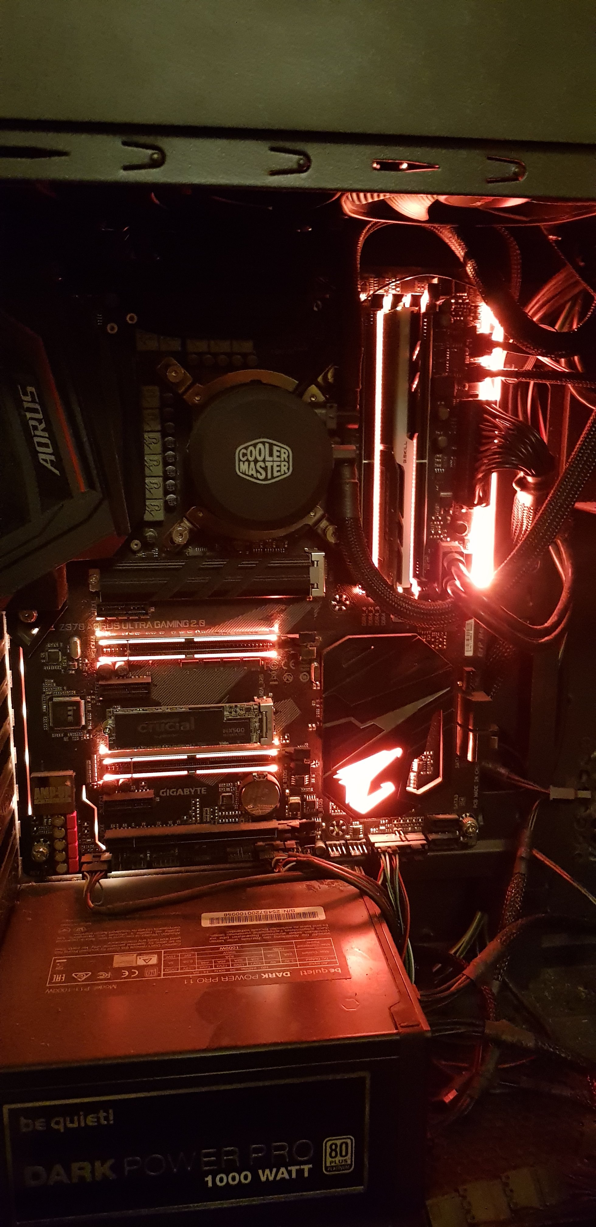 Das einzige was angezeigt wird sind alle led am Mainboard in Orange, wobei ich die Einstellungen auf blau gestellt habe - ist somit wohl ein Fehlercode, wozu ich nirgends eine Erklärung dazu finde.
