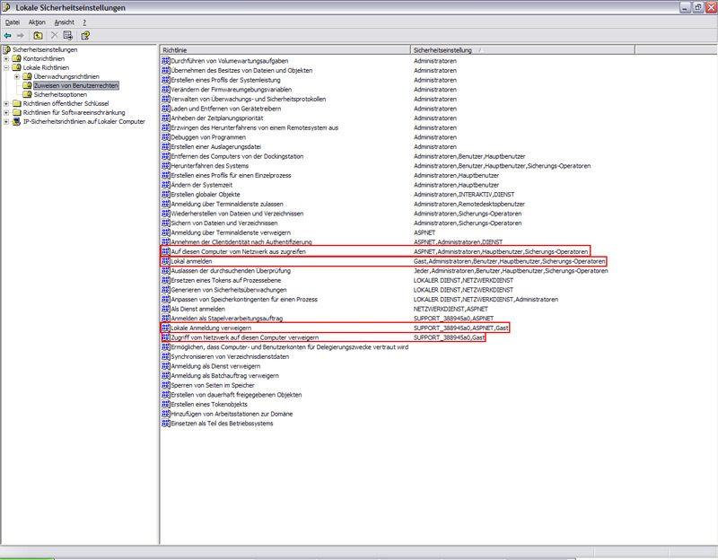 Systemsteuerung/Verwaltung/Lokale Sicherheitsrichtlinie