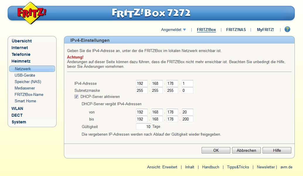 IPv4-Adresse . . . . . . . . . . : 192.168.178.20(Bevorzugt)