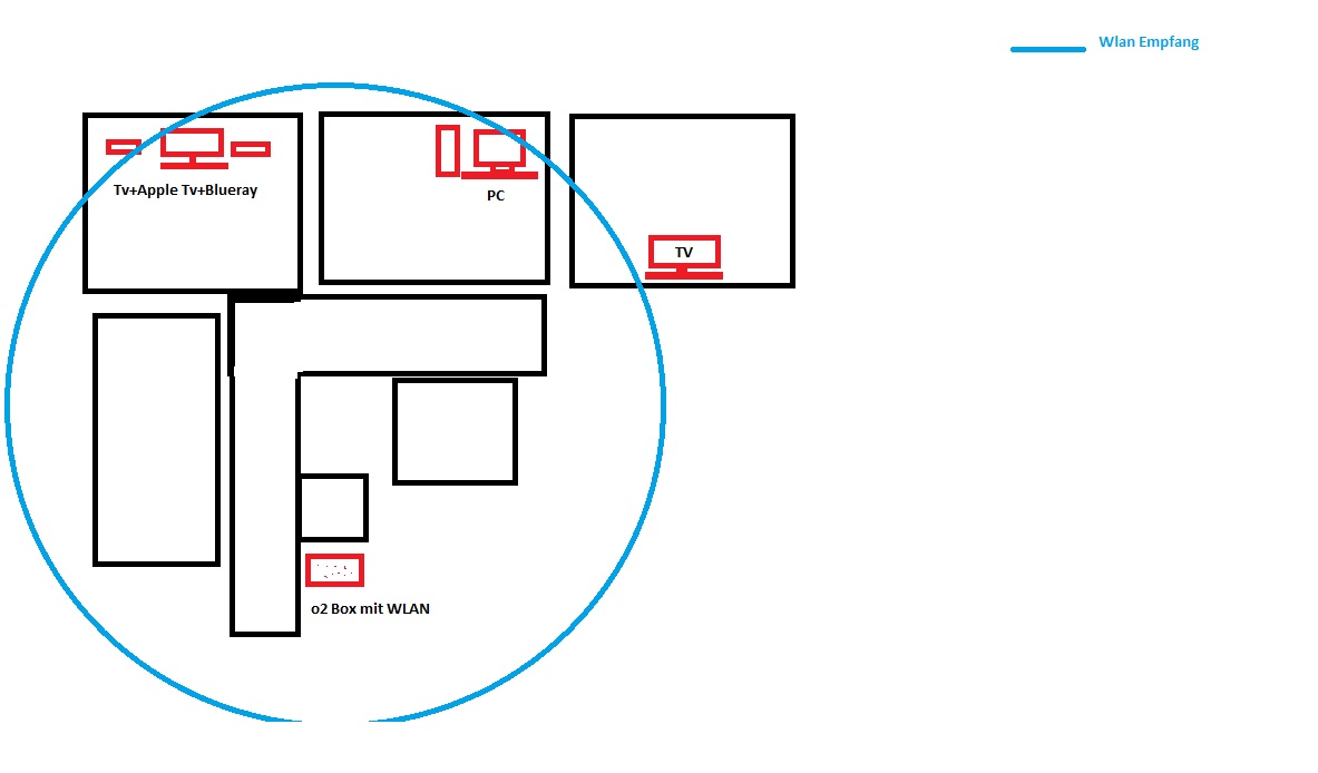 Die Telefondose ist die einzige in meiner Wohnung und ist direkt bei der o2 Box (Rot eingezeichnet unten)