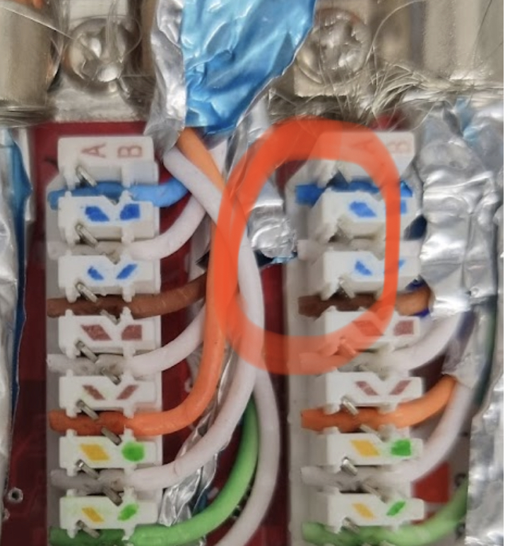 Über ein selbst verlegtes, gecrimptes und gepatchtes Kabel geht es in mein Arbeitszimmer, wo mein PC und ein WLAN-Access-Point steht.