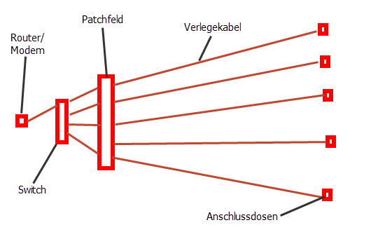 Der andere Punkt ist das man durch das Verwenden von Managed Switches sehr gut VLANs einrichten kann. Man kann quasi Telefon und Netzwerk zusammen in einem Panel auflegen und beliege Netze zusammenfassen bzw. trennen. Genauso führt man das Internet in die nähe vom Patchfeld. Somit spart man sich Strom durch die Verwendung von nur einem großem Switch statt 3-4 und man sieht sofort ob Defekte Hardware die Schuld an einem Ausfall ist.
