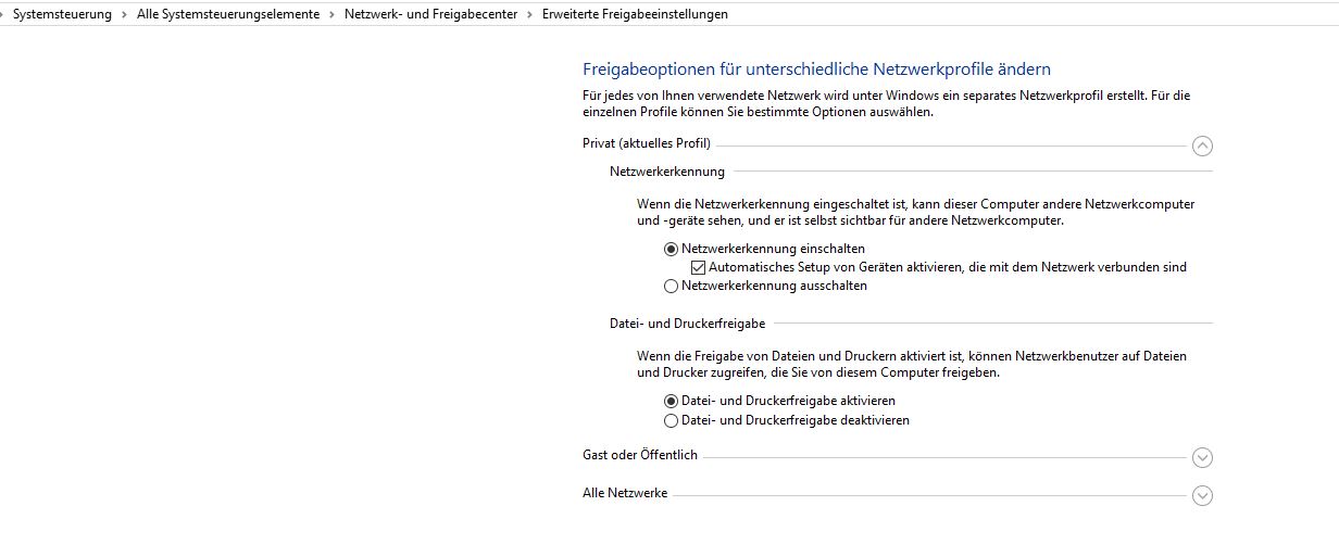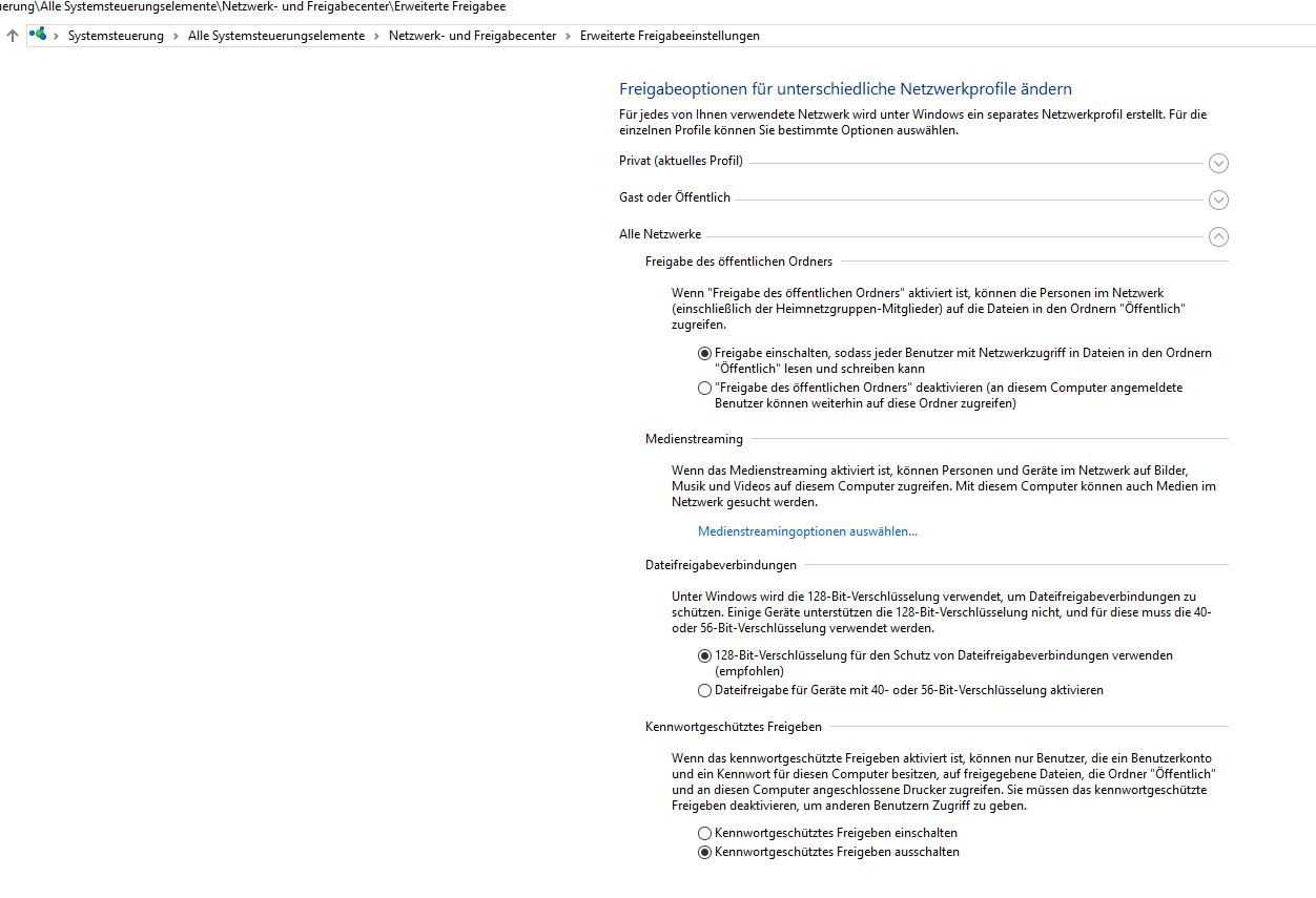3. Privat Netzwerk an allen Netzwerken an allen Rechner Konfiguriert Passworteingabe > AUS mit Drucker Freigabe
