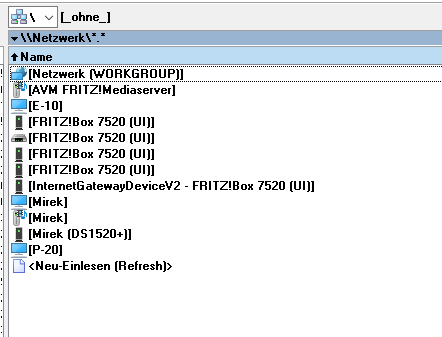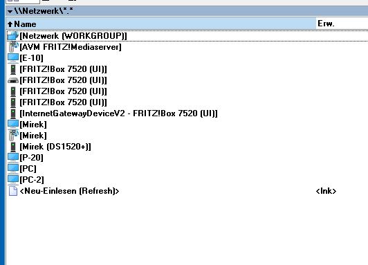Müssen sie ja auch gar nicht. Auch im Total Commander funktionieren die Links so wie angegeben. Also im Schnellzugriff richtet man z.B. als Kommando cd \\192.168.178.20\Freigabename ein und kann dann auf diese Freigabe zugreifen. Oder eben cd \\ArbeitsPC\Freigabename wenn der Rechner so heißt.mirojan schrieb:Genau das möchte ich erreichen. Aber im TC unter Netzwerk tauchten die beiden Rechner nicht auf