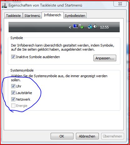 Netzwerk und Sound in Infoleiste ausblenden