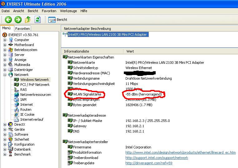 Beim Acer - den ich nun neu installiert habe mit Vista, funktioniert das Netzwerk tadellos. Funkstärke 5.