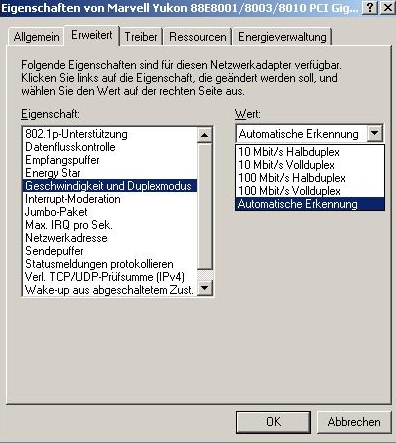 ein anderer rechner zeigt beim status "netzwerkadresse beziehen" die rate 1 GB an, sobald er aber die netzwerkadresse bezogen hat, steht die verbindung nur mit 100 MBIts.