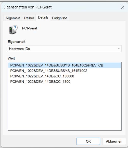 Im Gerätemanerger zeigt sich jetzt ein unbekanntes Gerät, vielleicht der Controller. Aber ich bekomme keinen Treiber installiert. Das unbekannte Gerät zeigt sich aber erst wenn ich die iGPU im Bios ausschalte, vielleicht ist das auch die iGPU.