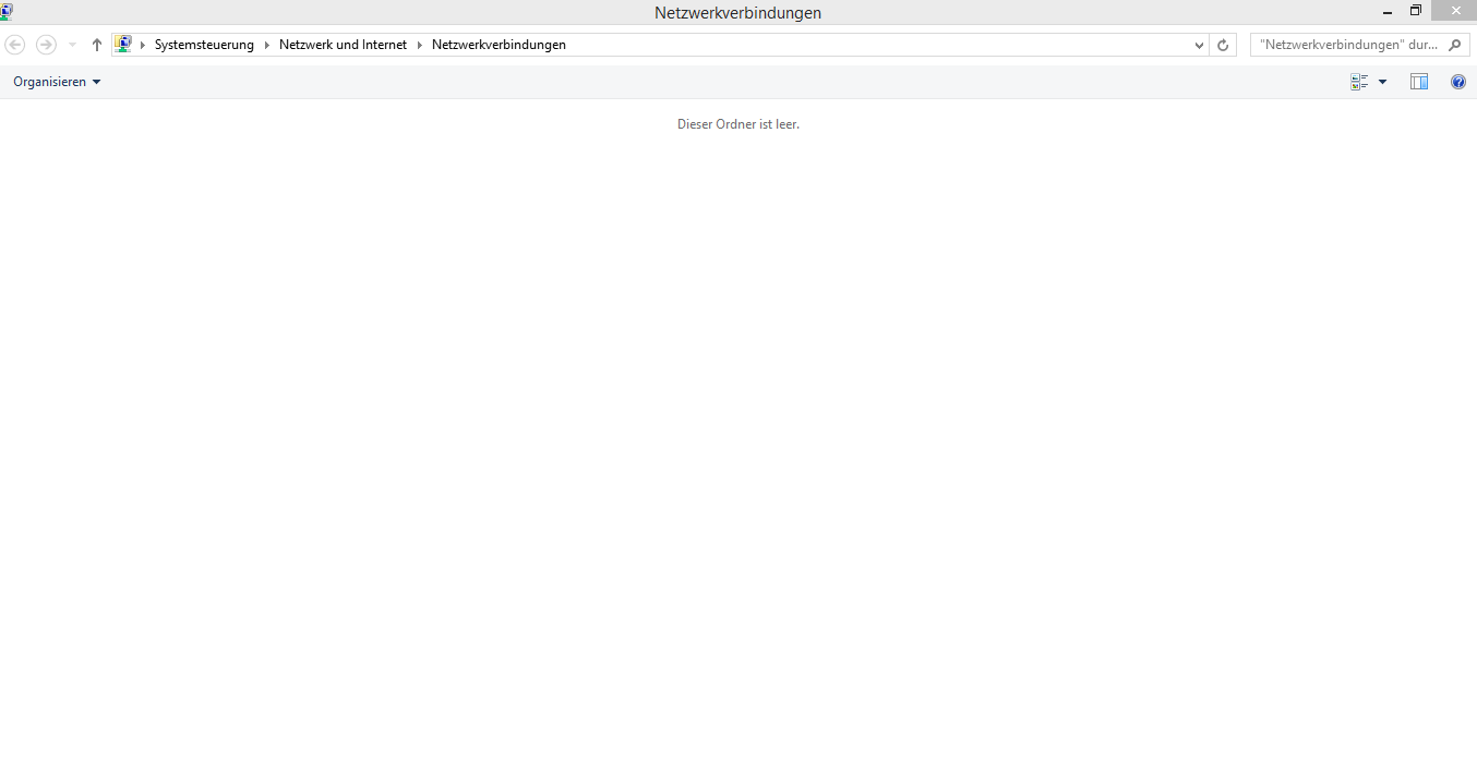 Nun gehe ich ins Netzwerk und Freigabecenter und sehe, das plötzlich sämtliche Verbindungen und Adapter verschwunden sind.