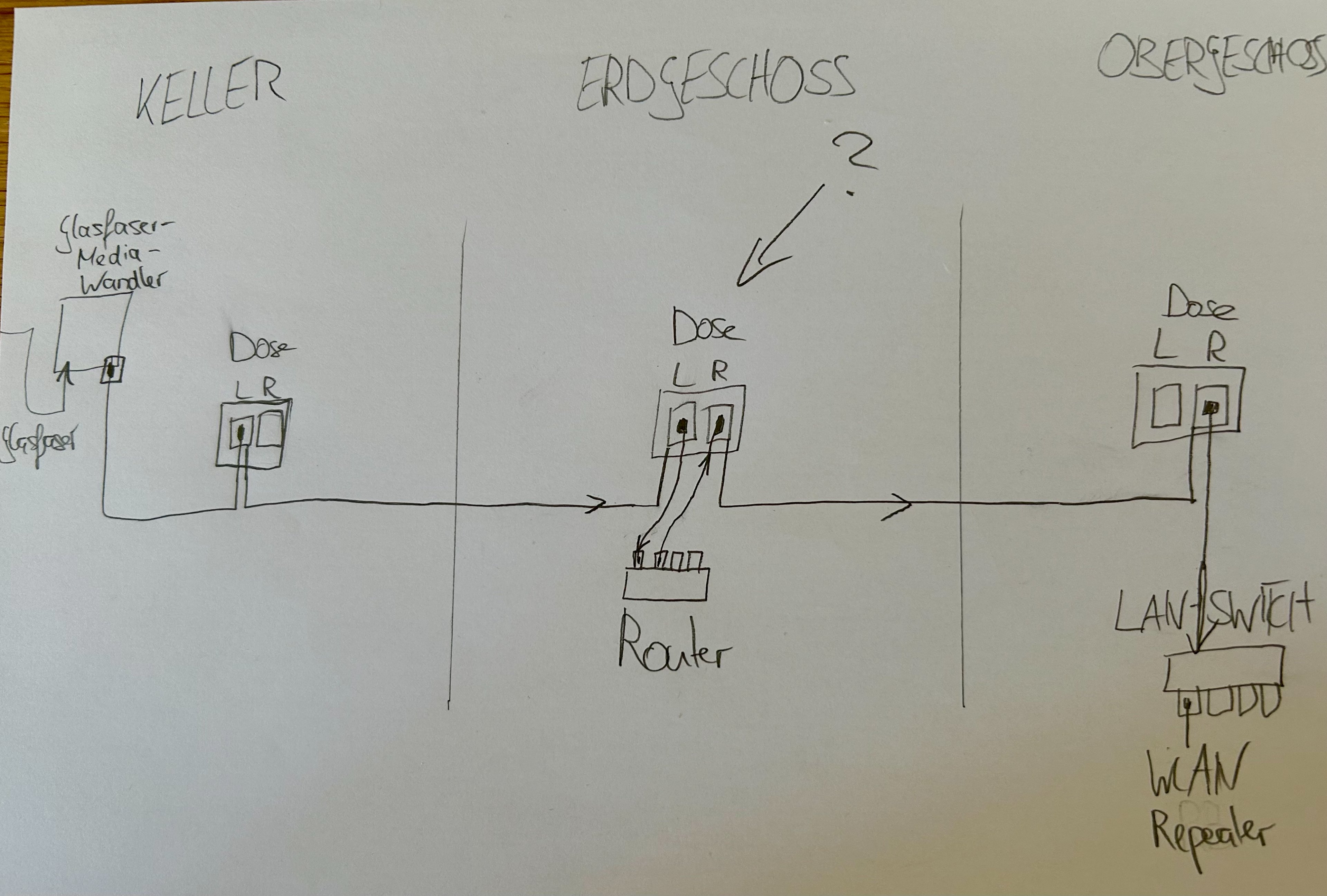 Aktuell gibt es aber kein Netzwerkkabel zwischen den Geschossen, nur das alte Kupferkabel.